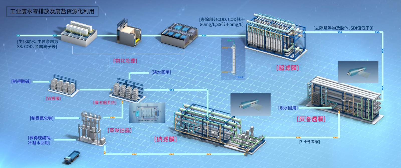 實現中水回用、鹽與干泥的分質處置